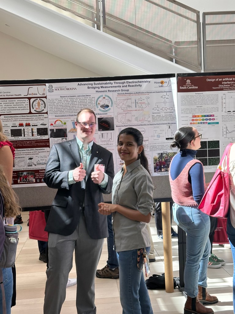 04/25/2025 – Congratulations to our senior undergraduates Chris LeBarron and Skylar Stewart on their successful poster presentations at DiscoverUSC. Chris earned second place within his competition category!